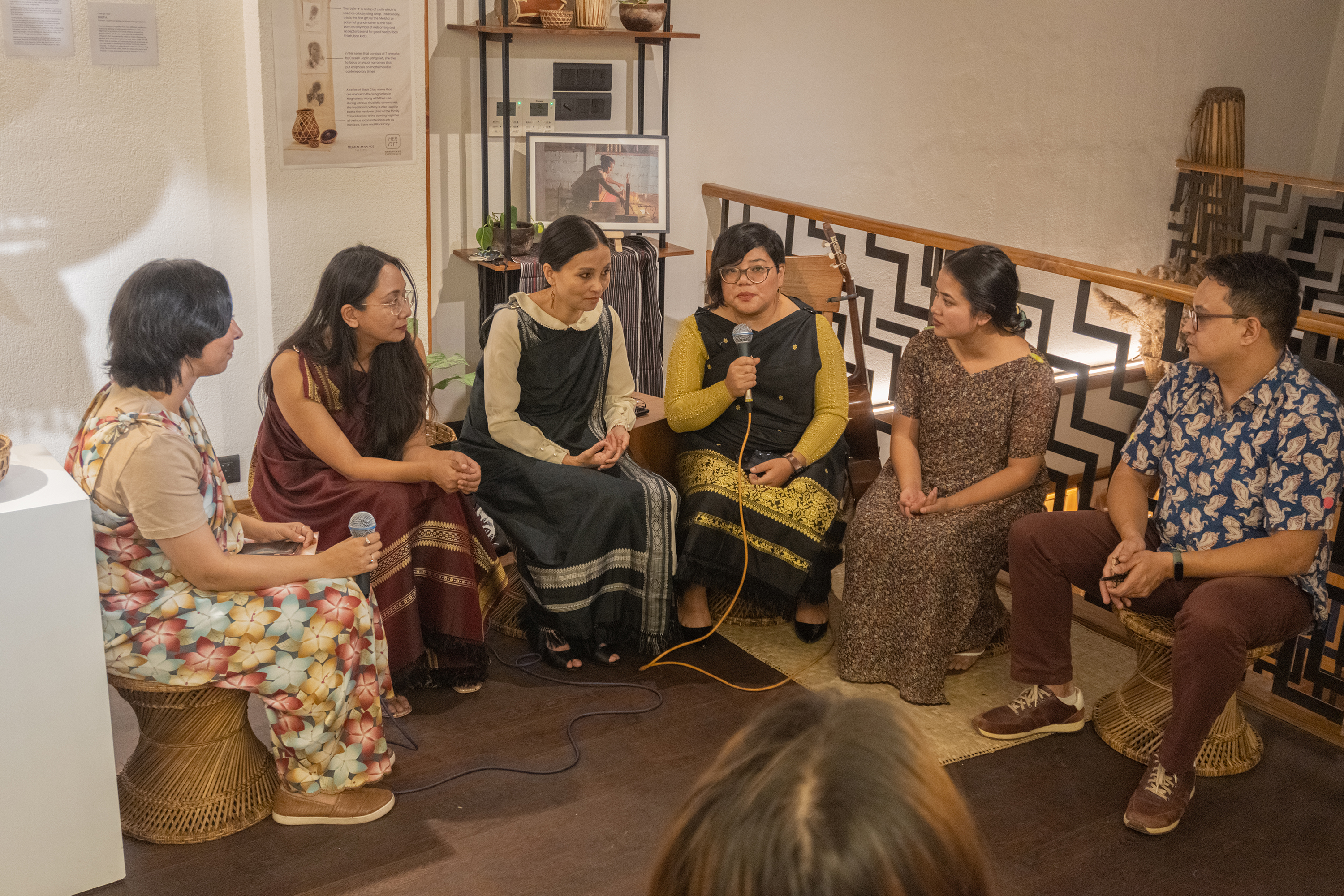 Careen Langstieh and Rida Gatphoh collaborate on an installation that speaks of birth, family, birth rituals, safeguarding, caretaking, and motherhood, of the Khasi origin story - these all come together in a synchronized expression to celebrate life and the Khasi culture. Balaiamon Kharngapkynta shared her practice in printmaking, its connection to her life of being the youngest daughter, the subjects that speak of her relations, and that of women in Meghalaya. And through the medium of song and story, Maya Lyngdoh Mawlong shares her journey in music and melodies that celebrate her place and personhood.